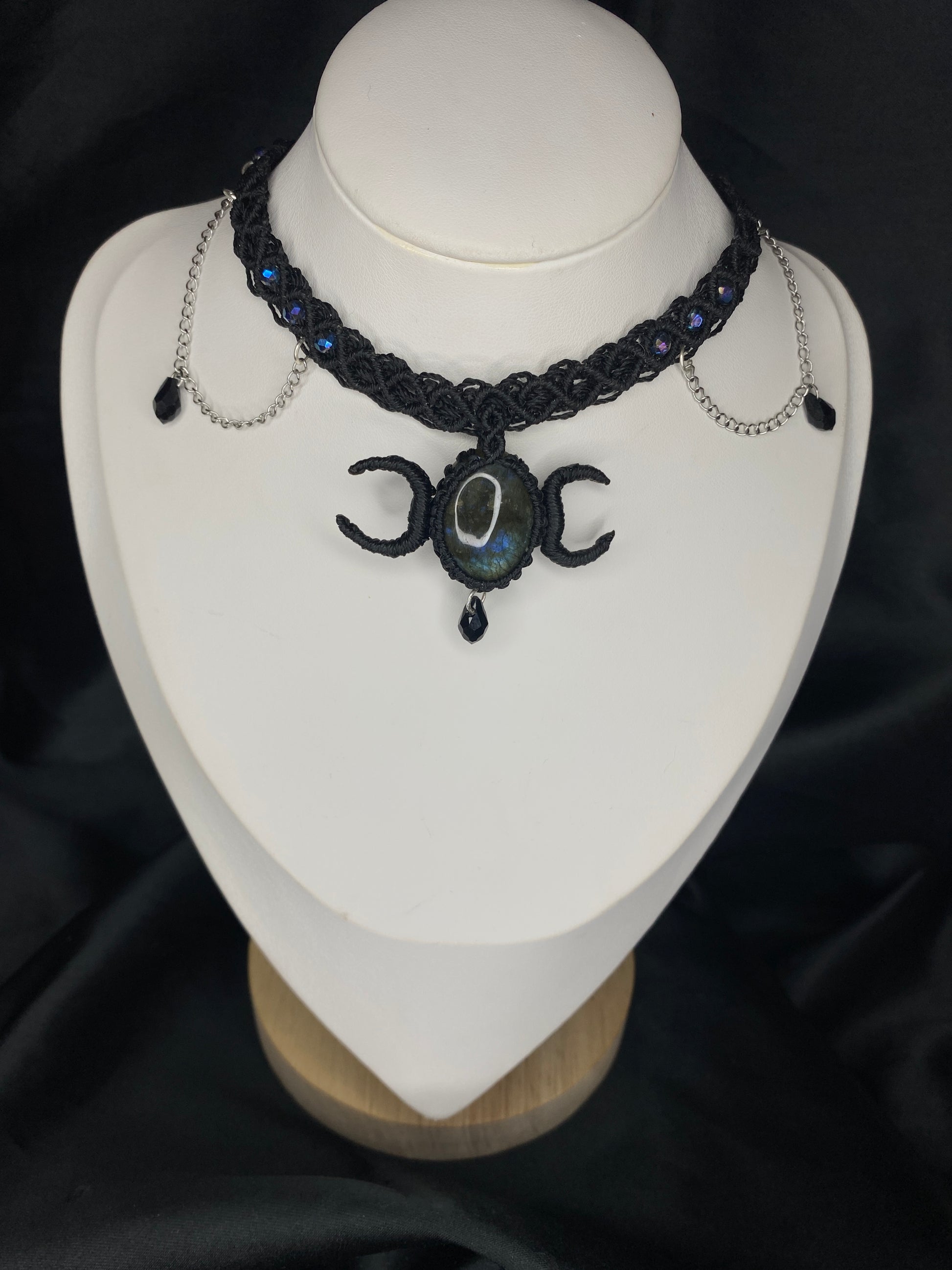 ✨Collana regolabile in macramè con pietra naturale di qualità: Labradorite e perline in vetro